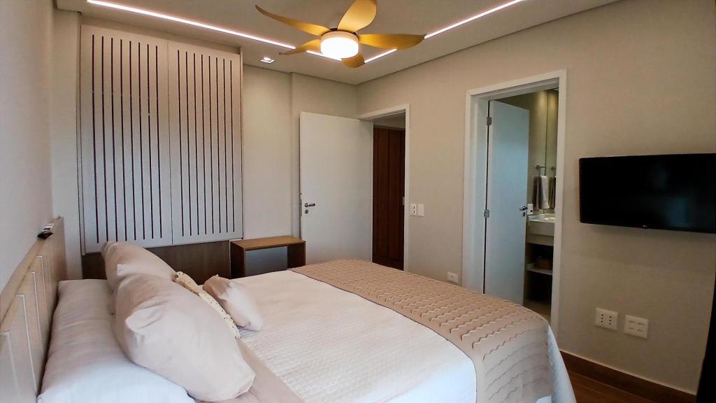 Situado em andar alto, o imóvel oferece vista para o mar. Todos os ambientes contam com ar-condicionado, garantindo conforto total durante toda a estadia. São 4 dormitórios, sendo 3 suítes, proporcionando comodidade e privacidade para os hóspedes.