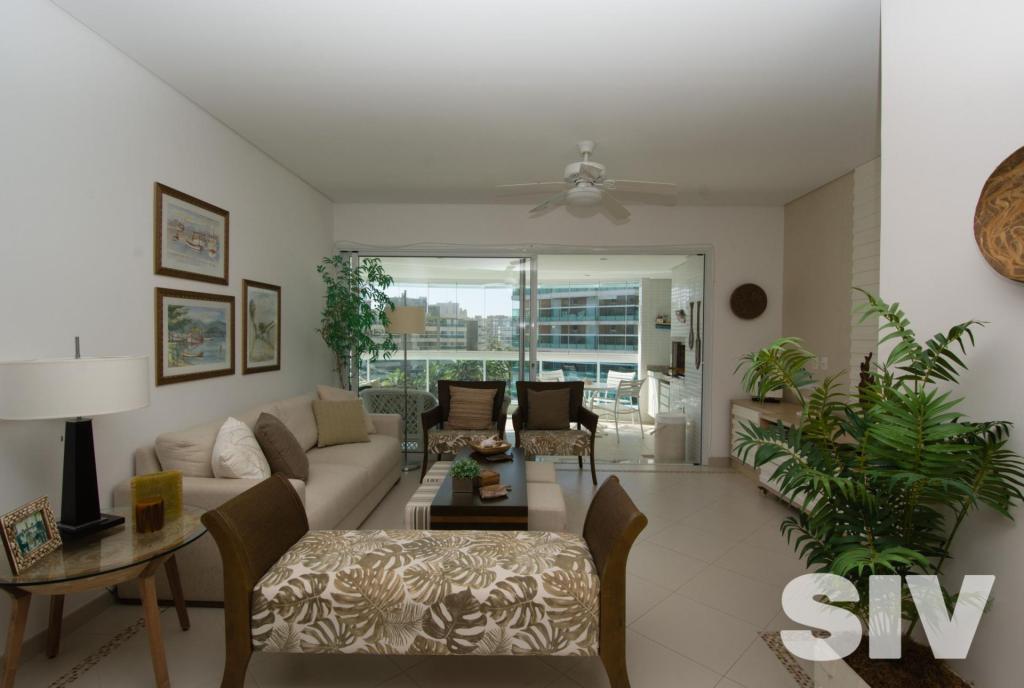 Lindo apartamento pé na areia para locação com 192m² de área útil, mobiliado e decorado, living room para 2 ambientes, cozinha americana completa com armários, copa, 4 suítes, terraço, ar condicionado, área de serviço, wc e dependência de empregados, varanda gourmet, 4 vagas de garagem.