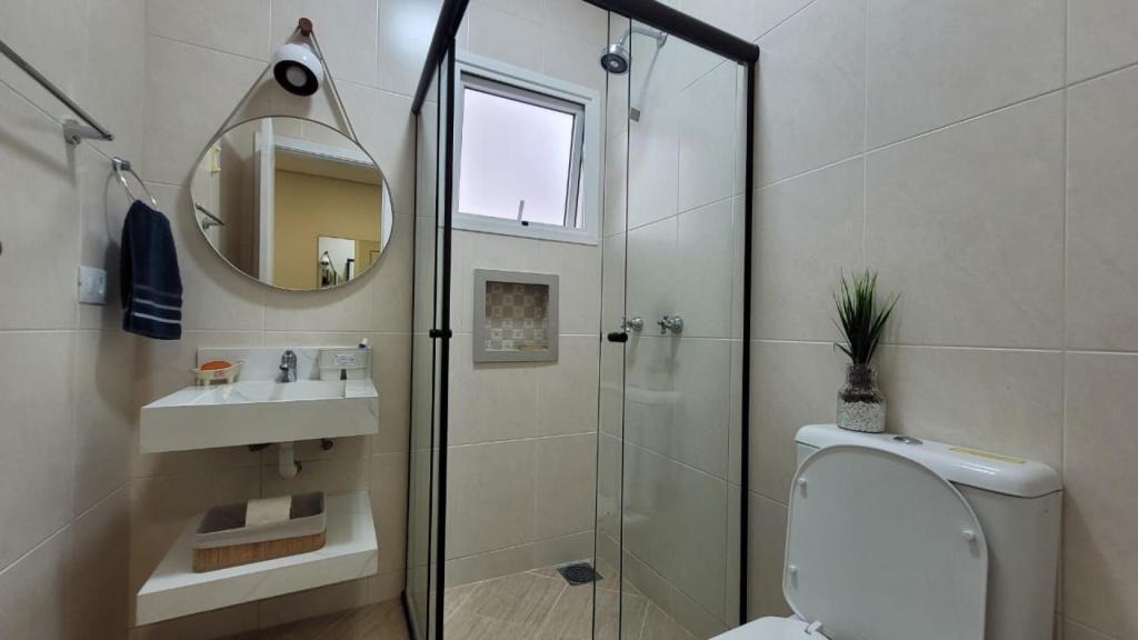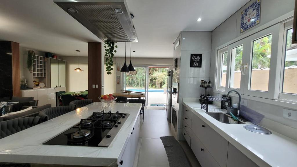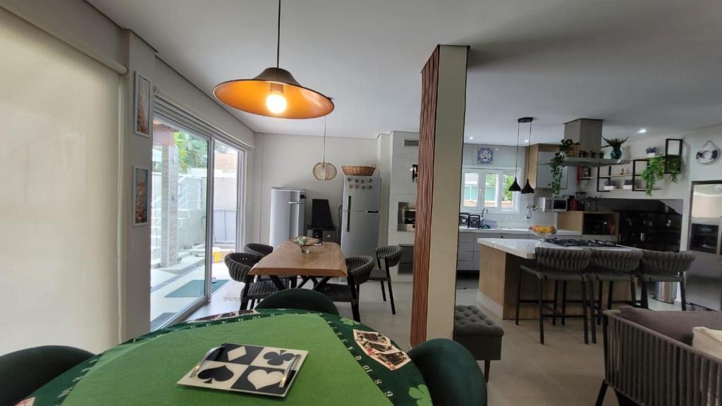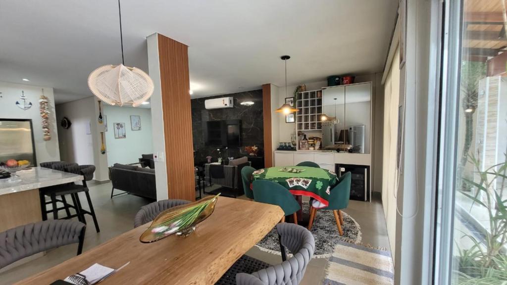 A casa possui 4 quartos, sendo 2 suítes, e mais 1 banheiro social, garantindo privacidade e praticidade para todos os hóspedes. A sala é ampla, dividida em 3 ambientes aconchegantes, perfeita para reunir a família e os amigos. A cozinha americana é completa, equipada com tudo que você precisa para preparar suas refeições. E para o seu conforto, todos os ambientes contam com ar condicionado.