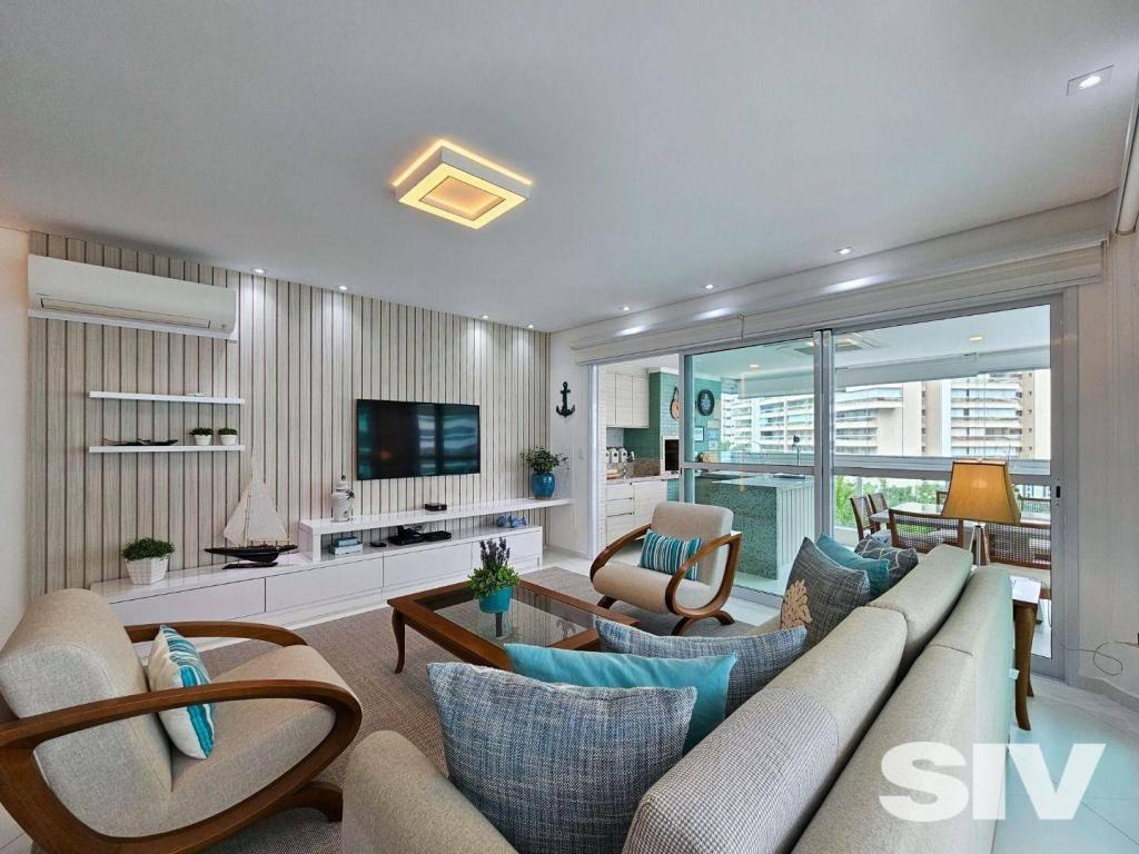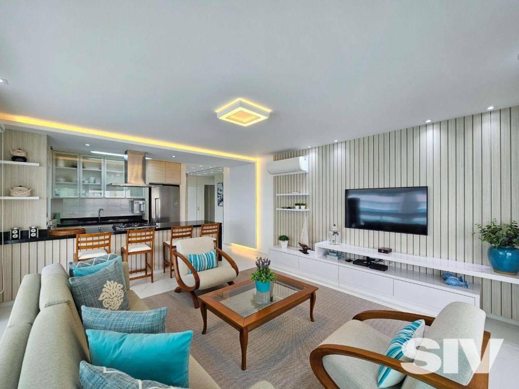 Lindamente decorado e mobiliado, esse apartamento impecável é perfeito para quem busca fugir da agitação do dia a dia e desfrutar da brisa fresca do mar e do som das ondas da Riviera de São Lourenço. Com 158 m² de área útil, 3 suítes, living para 2 ambientes, área de serviço e 2 vagas de garagem, é a grande oportunidade de ter seu próprio pedacinho do paraíso! Relaxe na piscina, pratique esportes na academia ou faça um churrasco na área gourmet do prédio que também conta com brinquedoteca, salão de festas, salão de jogos e sauna. APARTAMENTO para Venda em RIVIERA DE SÃO LOURENÇO - BERTIOGA com 158 m2 de área útil, 3 dormitório(s), 3 suíte(s) e 2 vaga(s).