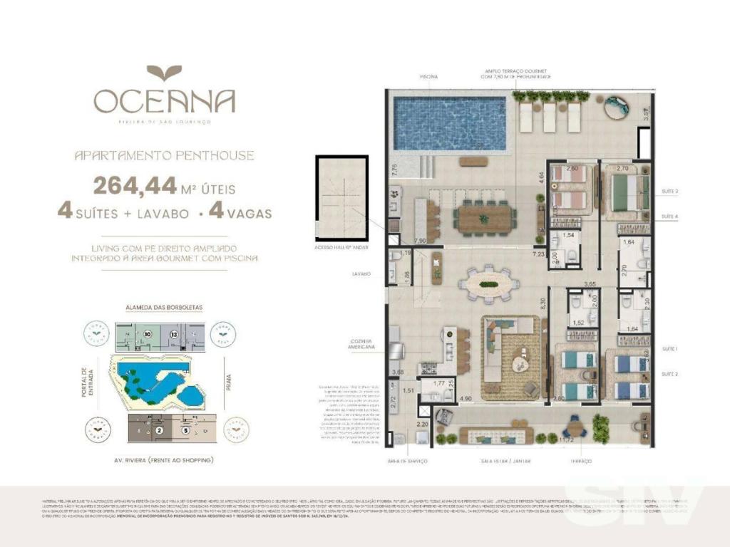 Um moderno e exclusivo empreendimento de apartamentos acaba de ser lançado na Riviera de São Lourenço. Prepare-se para viver o auge do luxo e sofisticação no Oceana, da Sobloco Construtora, que chega com o conceito de resort e muita lazer embarcado no projeto. Com direito a piscina com ilhas e grutas, piscinas cobertas, ampla academia e muitos outros atrativos, o Oceana surge como uma opção de moradia familiar e muito entretenimento. Dentre os diferenciais, destaque para: piscina familiar com raia de 50 metros, cachoeira e ilhas paisagísticas, piscinas cobertas infantil e adulto com raia de 25 metros, parque aquático infantil, playground, beach tennis, quadra de tênis e uma academia com pilates. APARTAMENTO para Venda em RIVIERA DE SÃO LOURENÇO - BERTIOGA com 264 m2 de área útil, 4 dormitório(s), 4 suíte(s) e 4 vaga(s).