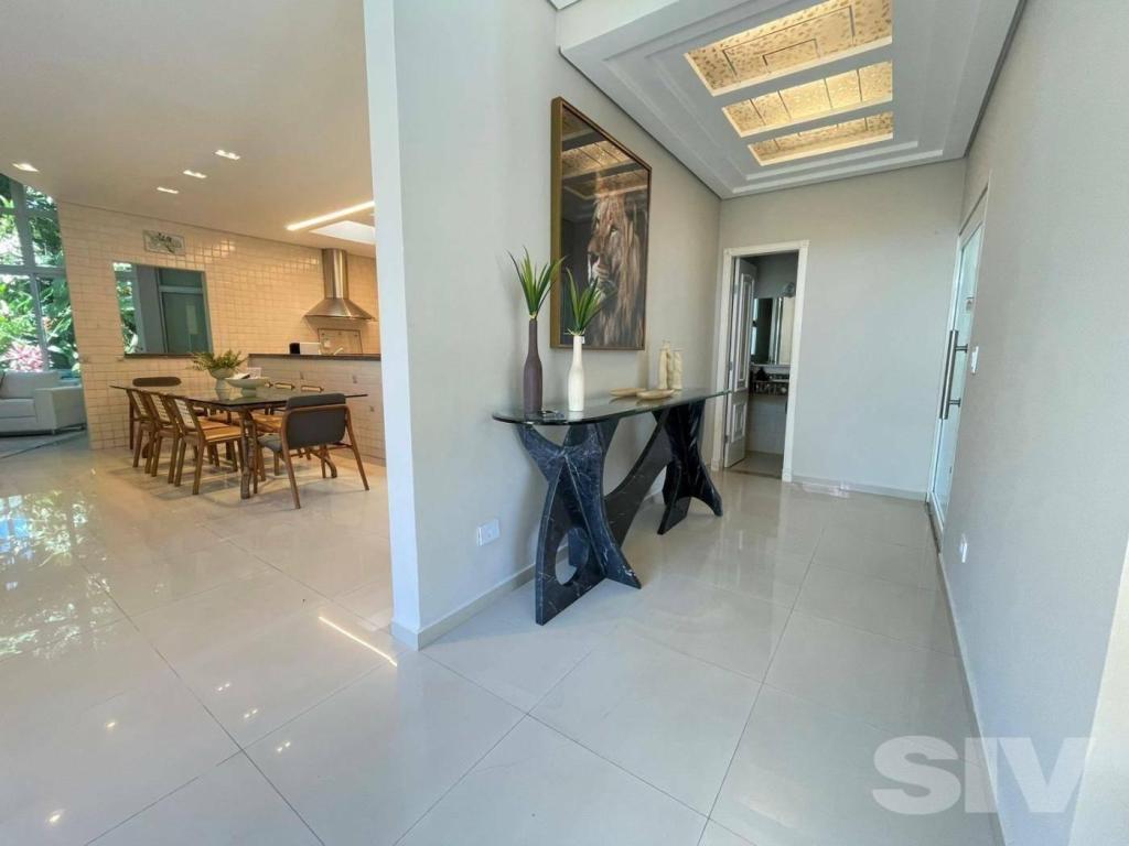Apresentamos uma residência que combina elegância, funcionalidade e qualidade de vida em cada detalhe. Localizada em um dos condomínios mais exclusivos da Riviera de São Lourenço, esta casa oferece 450 m² de área construída, distribuídos de forma inteligente para garantir amplitude e integração dos ambientes. A propriedade conta com 5 suítes espaçosas, todas climatizadas e iluminadas naturalmente, proporcionando conforto absoluto para moradores e convidados. O living com pé-direito elevado integra sala de estar, sala de jantar e uma cozinha moderna totalmente equipada, criando um ambiente social perfeito para convivência e recepção. A área externa é um verdadeiro refúgio particular. Desfrute de uma piscina privativa, espaço gourmet completo com churrasqueira e uma varanda acolhedora, ideais para momentos inesquecíveis com amigos e familiares. Se você busca um imóvel que una requinte, bem-estar e segurança, esta é a oportunidade ideal. Agende uma visita com um de nossos corretores e encante-se com cada detalhe desta casa única. CASA para Venda em RIVIERA DE SÃO LOURENÇO - BERTIOGA com 434 m2 de área útil, 5 dormitório(s), 5 suíte(s) e 4 vaga(s).