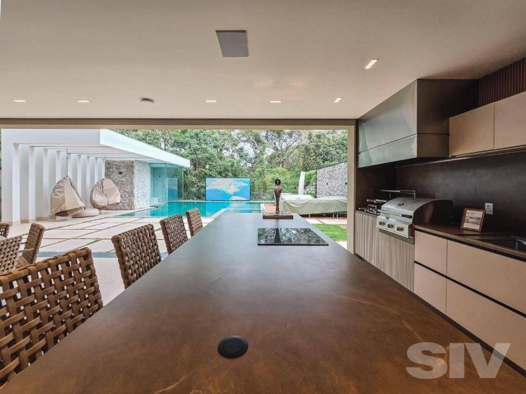 Apresentamos uma mansão de altíssimo padrão e nunca habitada na Riviera de São Lourenço, pronta para morar. Com impressionantes 826,50m² de terreno e 667,47m² de área construída, a residência oferece 06 suítes luxuosas, além de uma suíte de serviço, e conta com 06 vagas de garagem. A propriedade é entregue totalmente mobiliada e decorada, com todos os ambientes climatizados e um avançado sistema de áudio e vídeo completo. O lazer e o entretenimento são o ponto alto. A área externa conta com uma deslumbrante Piscina Aquecida com prainha, cascata e hidro integrada, além de uma Sauna Úmida e a charmosa Praça do Fogo. Para a diversão, a casa possui Telão de LED de 175, Máquina de Pinball e Mesa de Sinuca. A Área Gourmet integrada é perfeitamente equipada com cervejaria, máquina de gelo, chopeira e churrasqueira, ideal para receber com excelência. CASA para Venda em RIVIERA DE SÃO LOURENÇO - BERTIOGA com 661 m2 de área útil, 6 dormitório(s), 6 suíte(s) e 6 vaga(s).