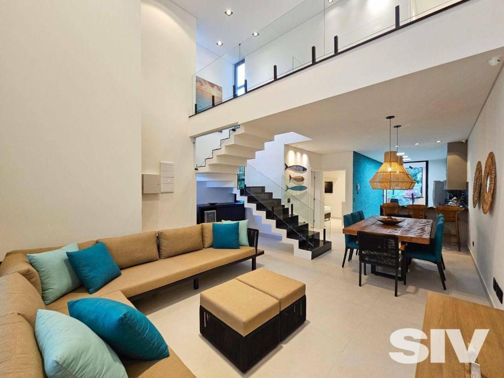 Villágio diferenciado com 4 suítes, sendo uma no pavimento térreo, living para dois belos ambientes, cozinha americana integrada a varanda gourmet, piscina aquecida privativa, casa mobiliada e decorada, bom gosto e modernidade, nova, pronta para uso, 205,56 metros de área privativa, com 2 vagas para veículos. Um dos melhores módulos da Riviera, modulo 24, sinônimo de modernidade e sofisticação, próximo ao club de golf, casas de alto padrão e valorização. VILLÁGIO para Venda em RIVIERA DE SÃO LOURENÇO - BERTIOGA com 205 m2 de área útil, 4 dormitório(s), 4 suíte(s) e 2 vaga(s).